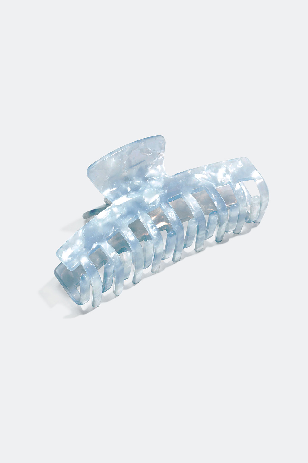 Aflang hårklemme med rektangulær form og marmoreret design. Det perfekte hårtilbehør til dig, der vil have meget hår med i enten en halv eller hel opsætning.