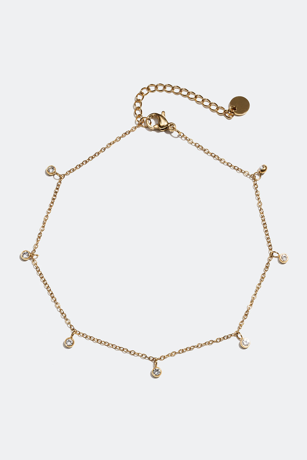 Ankelkæde i stål med 18 karat guld med Cubic Zirconia sten i gruppen 18 kt. guldbelagt stål / Ankelkæder i stål hos Glitter (209000332002)