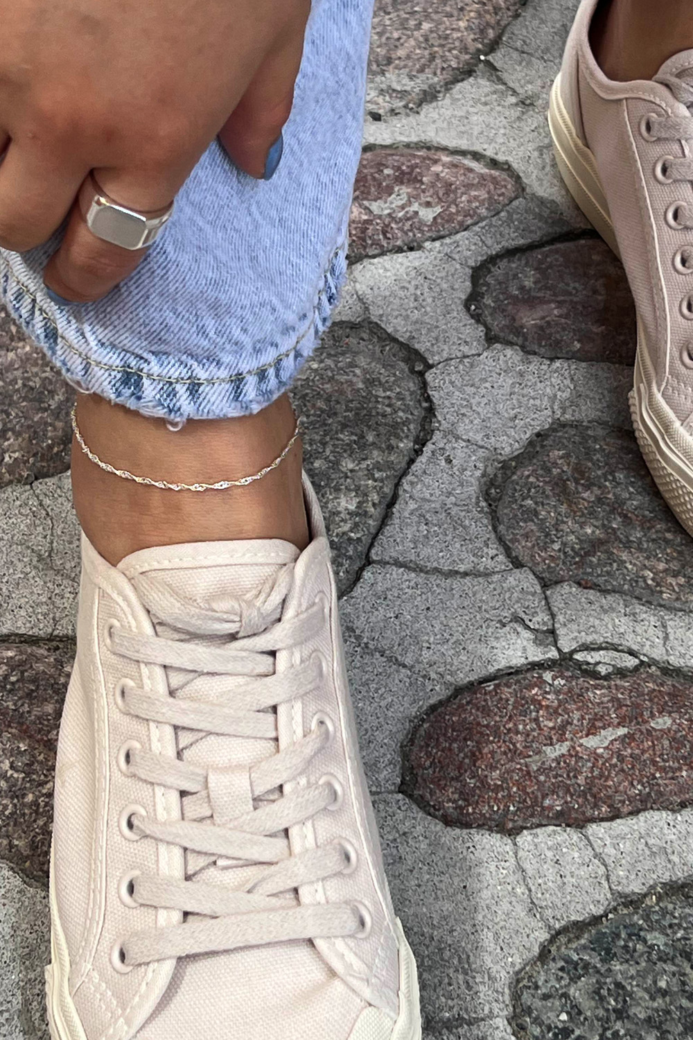 Ankelkæde i sølv, snoet - En ankelkæde i ægte sølv udsmykket med en snoet kæde. Længden på ankelkæden kan justeres.