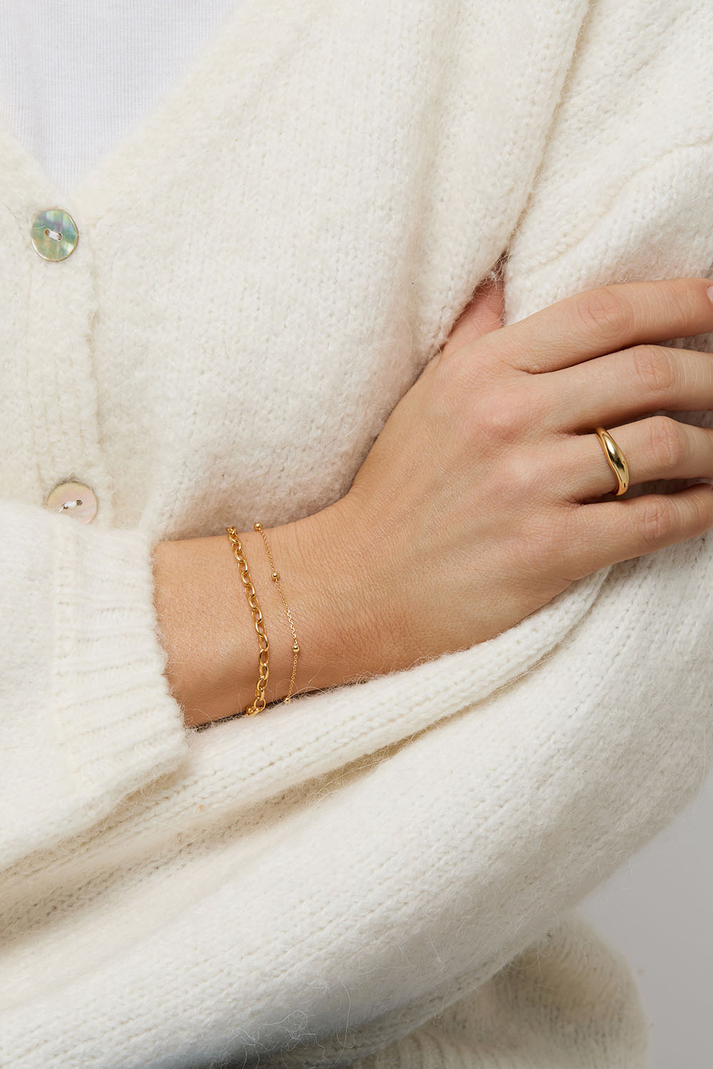 Armbånd i 18 karat guldbelagt ægte sølv med klassisk ankerkæde.
