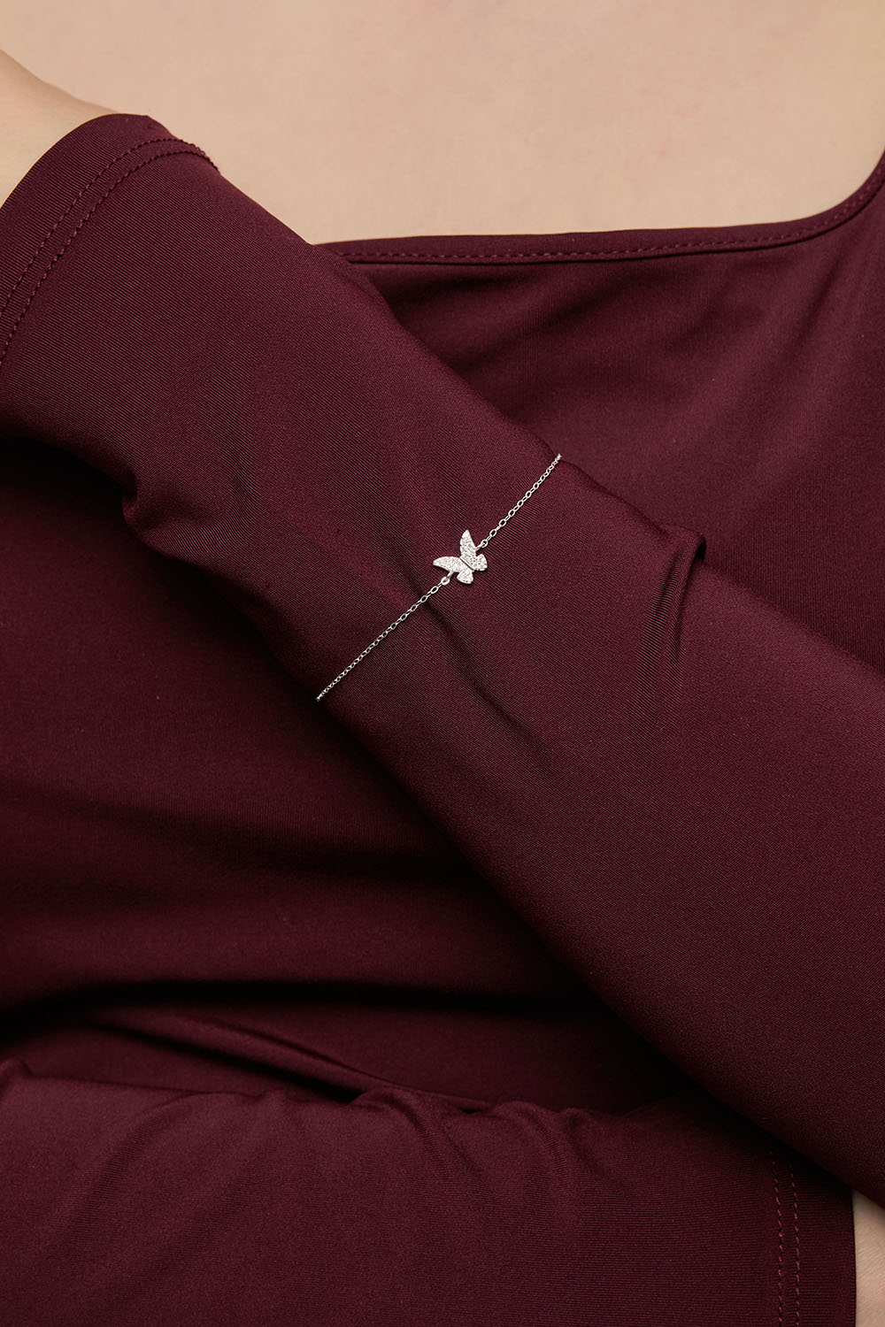 Armbånd i ægte sølv med smal kæde og en sommerfugl dekoreret med sten i kubisk zirkonia.