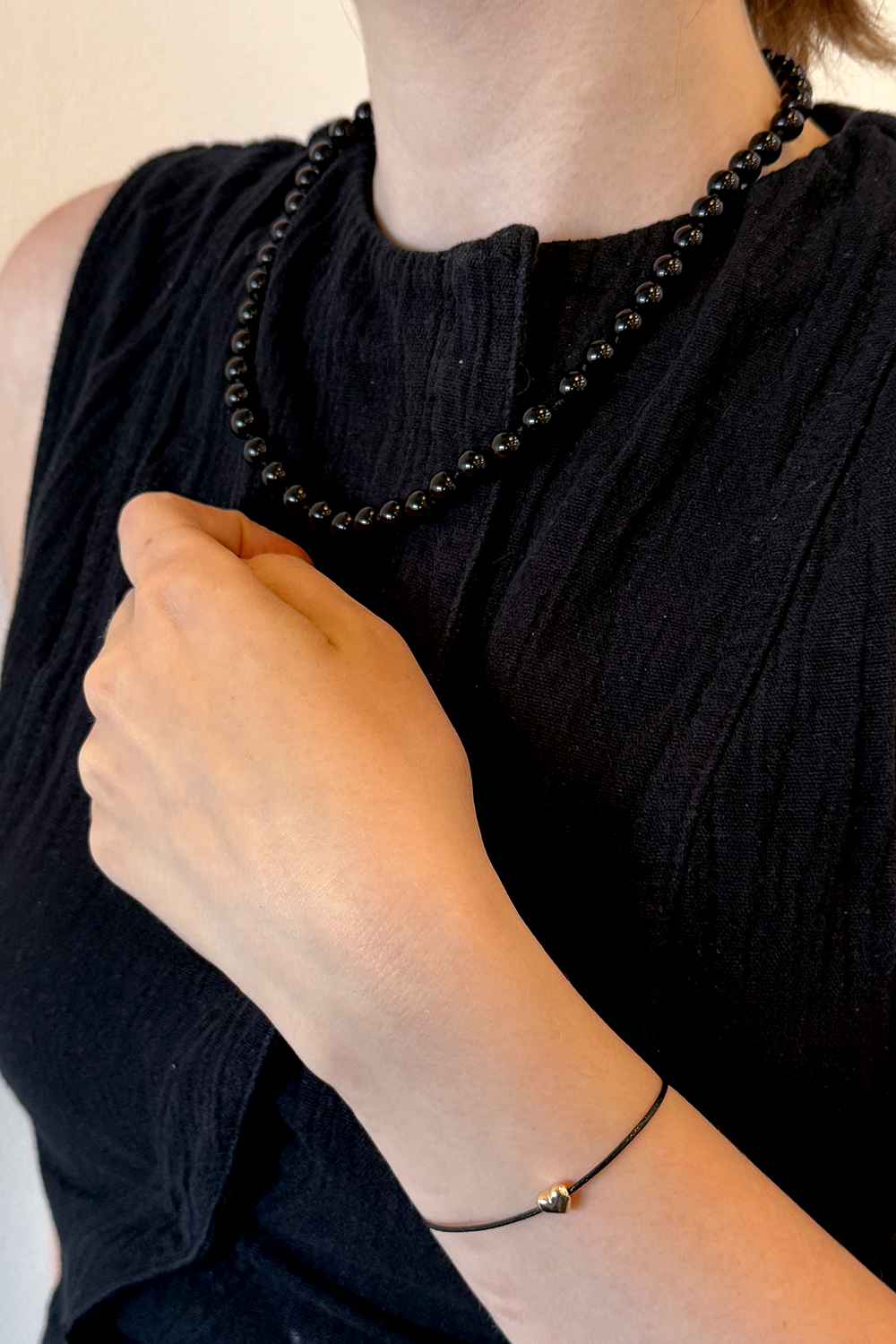 Tyndt armbånd af reb dekoreret med et guldfarvet hjerte.