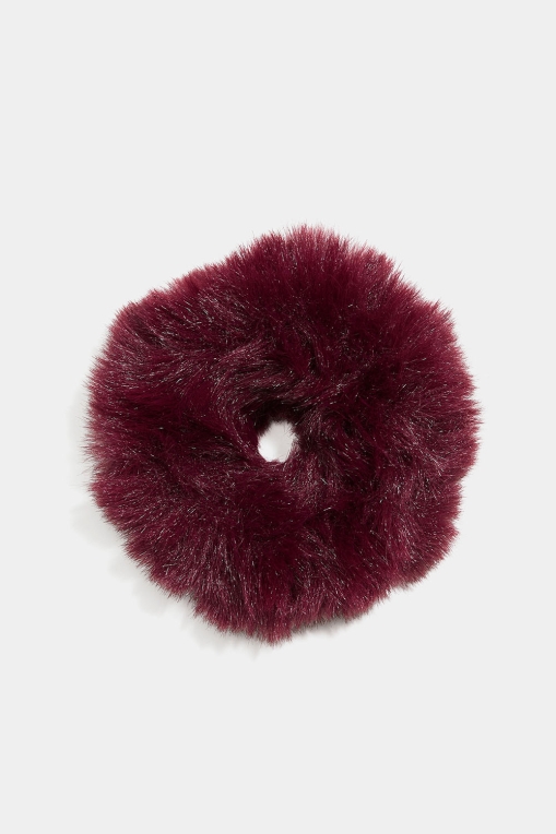 Blød og fluffy scrunchie i bordeaux kunstpels.