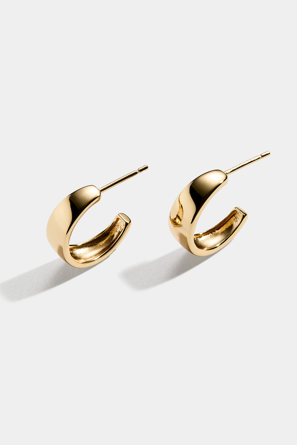 Klassiske hoops i 18 k forgyldt ægte sølv med bredt design og blankt ydre.