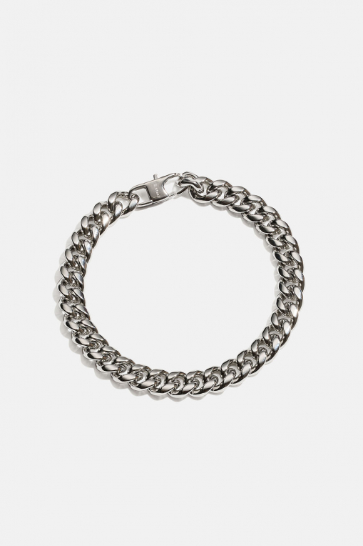 Bredt armbånd med rustfri stålkæde. Tidløst smykke lavet i et vandafvisende, allergivenligt og slidstærkt materiale, der holder dem smukke i lang tid. Du kan bade, tage brusebad og træne uden at bekymre dig om, at de mister farven. Fås i størrelserne S/M og M/L.