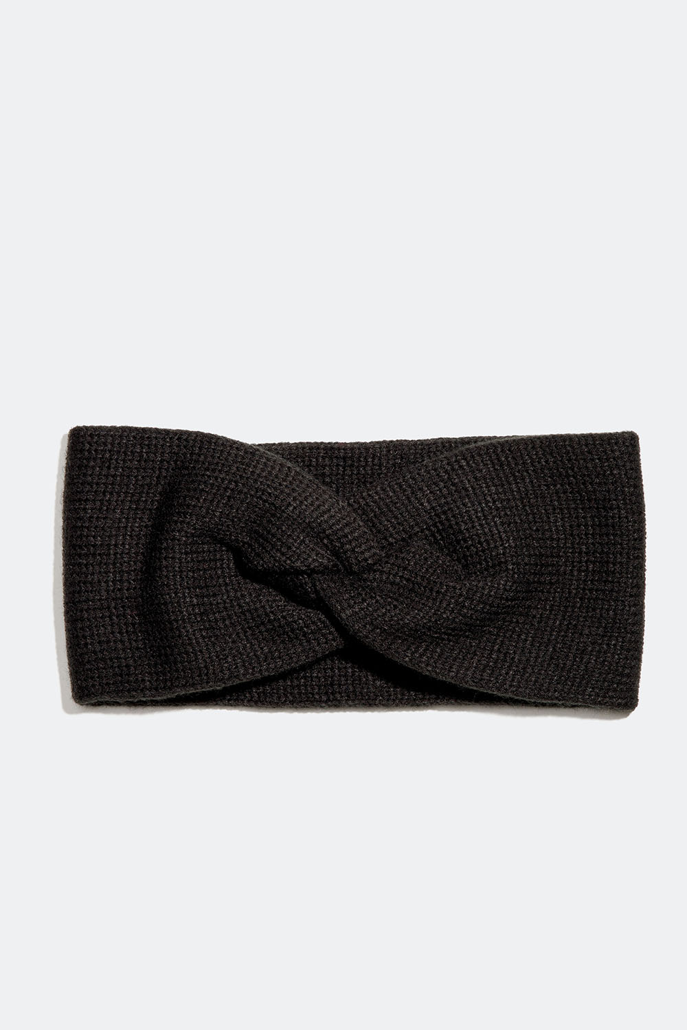 Et bredt strikket pandebånd i en blød kvalitet med en dekorativ knudedetalje foran. Sødt pandebånd i sort farve, der holder dig varm på kolde dage i efteråret og vinteren.