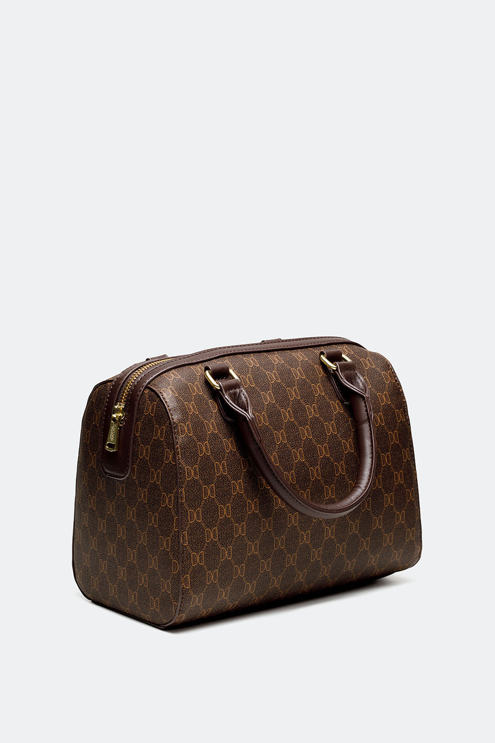 Brun taske med Don Donna-logoet trykt. En stilren taske, der kommer med to hanke og en aftagelig skulderrem. Tasken har et større rum, der lukkes med lynlås og to mindre rum indeni. Perfekt hverdagstaske og tilbehør til arbejde og en dag i byen. Skulderremmen er aftagelig og justerbar, så du også kan have tasken på som crossbody.