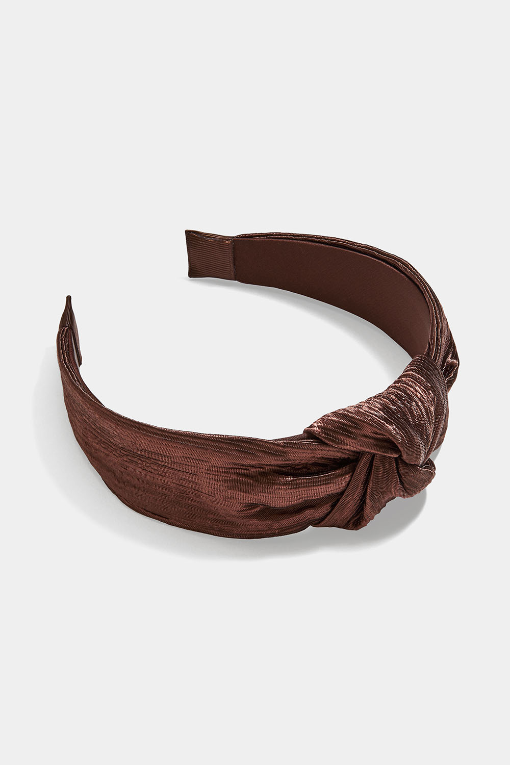 Bred hårbøjle med knude i brunt, plisseret stof.