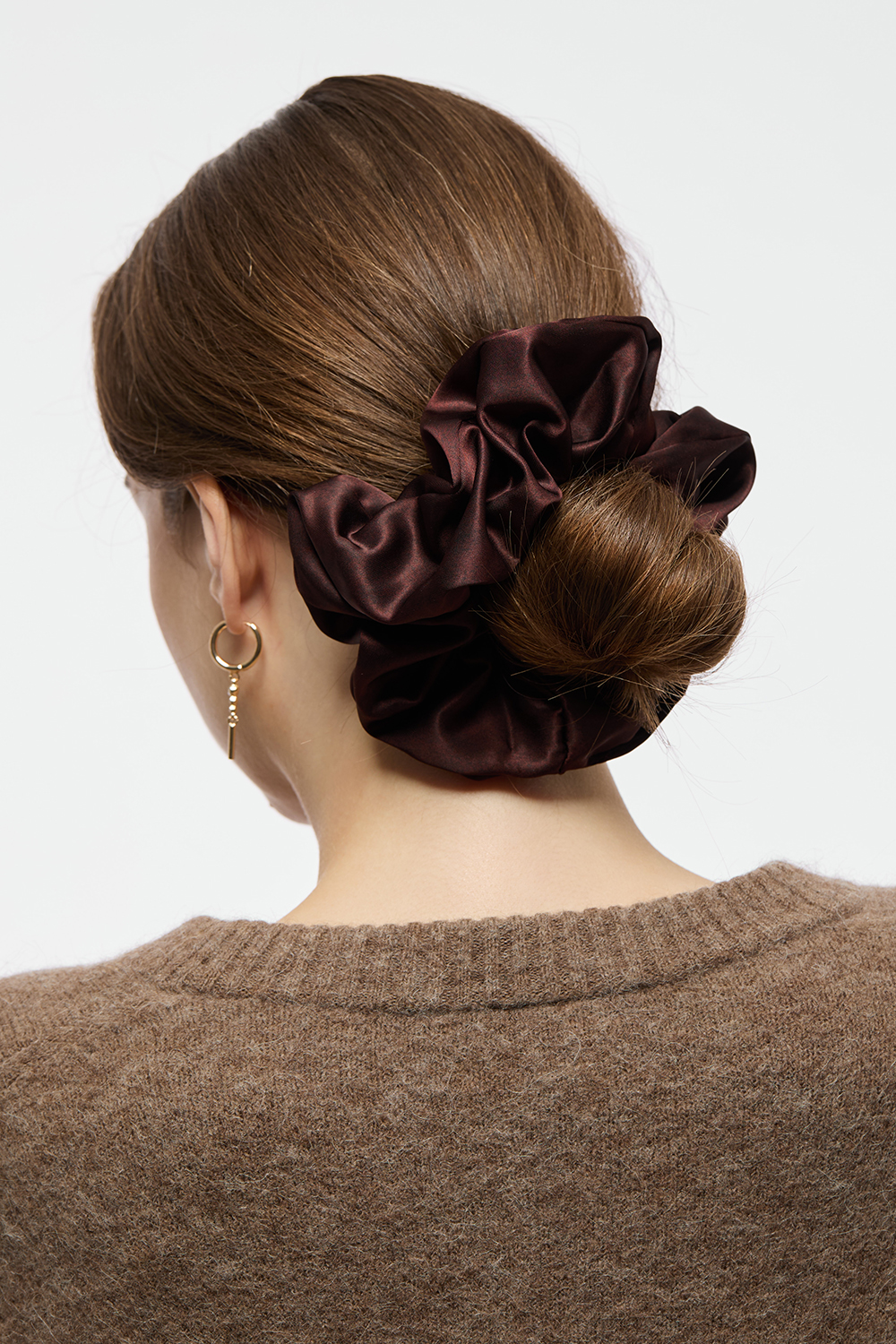 Brun scrunchie i glansfuldt stof i gruppen Store week / hos Glitter (332001448200)