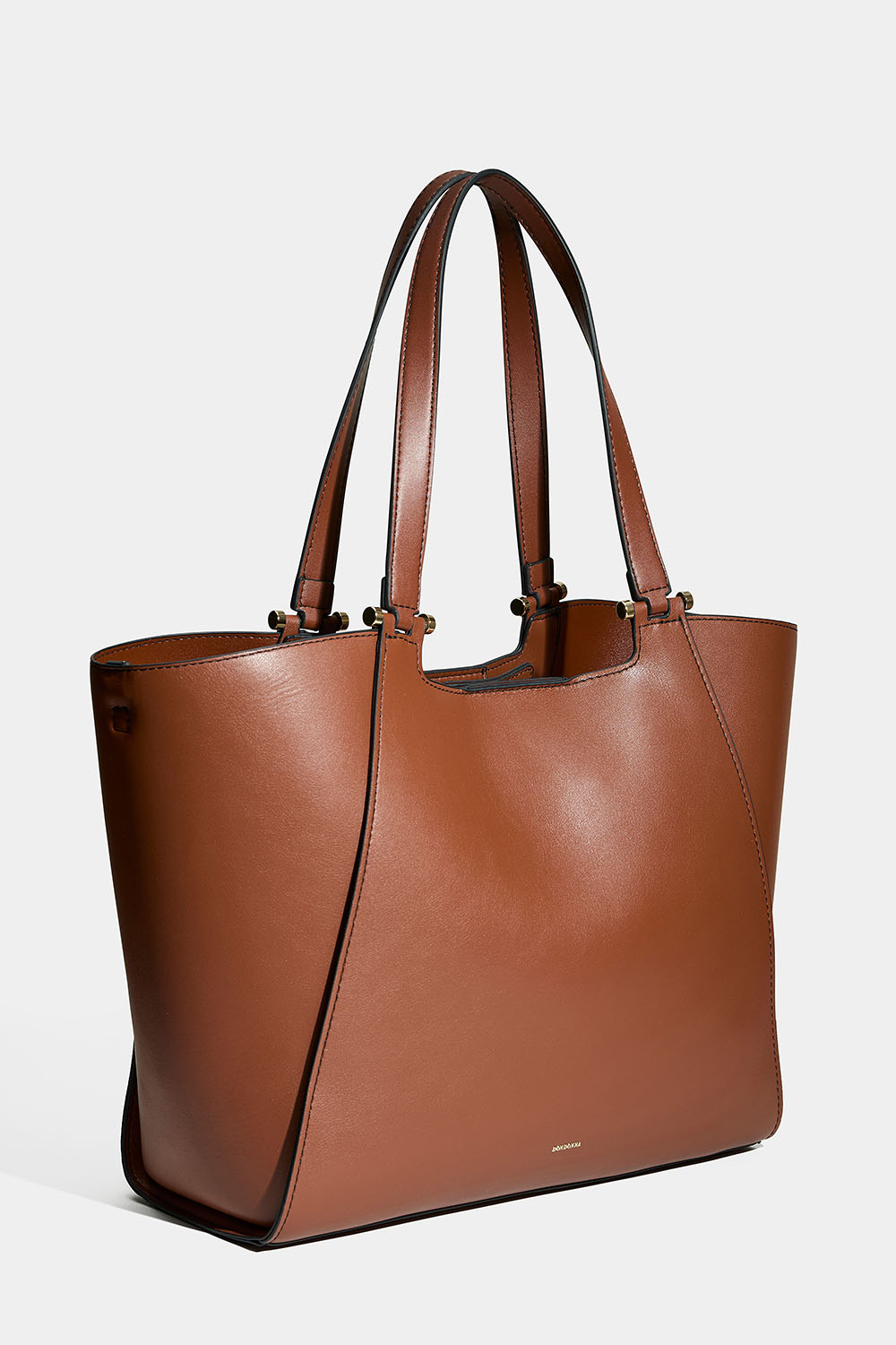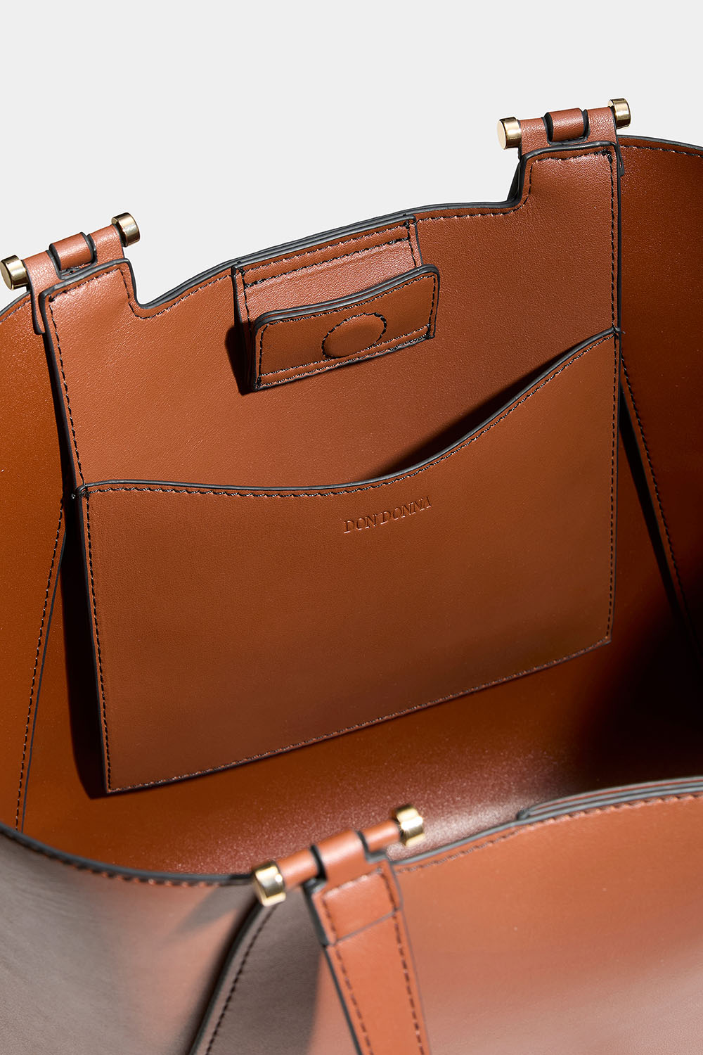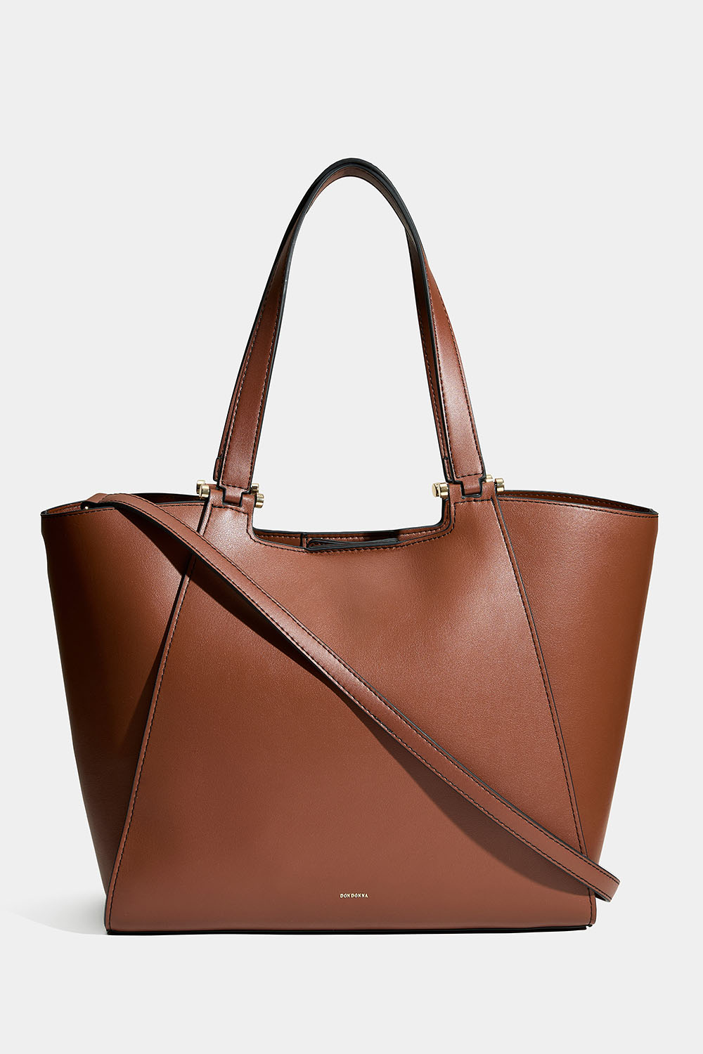 Brun totebag fra Don donna i imiteret læder. En stilfuld taske med dobbelte smalle håndtag og en aftagelig længere skulderrem. Tasken har et stort rum, så du kan vælge at knappe siderne af tasken for at få en smallere pasform.