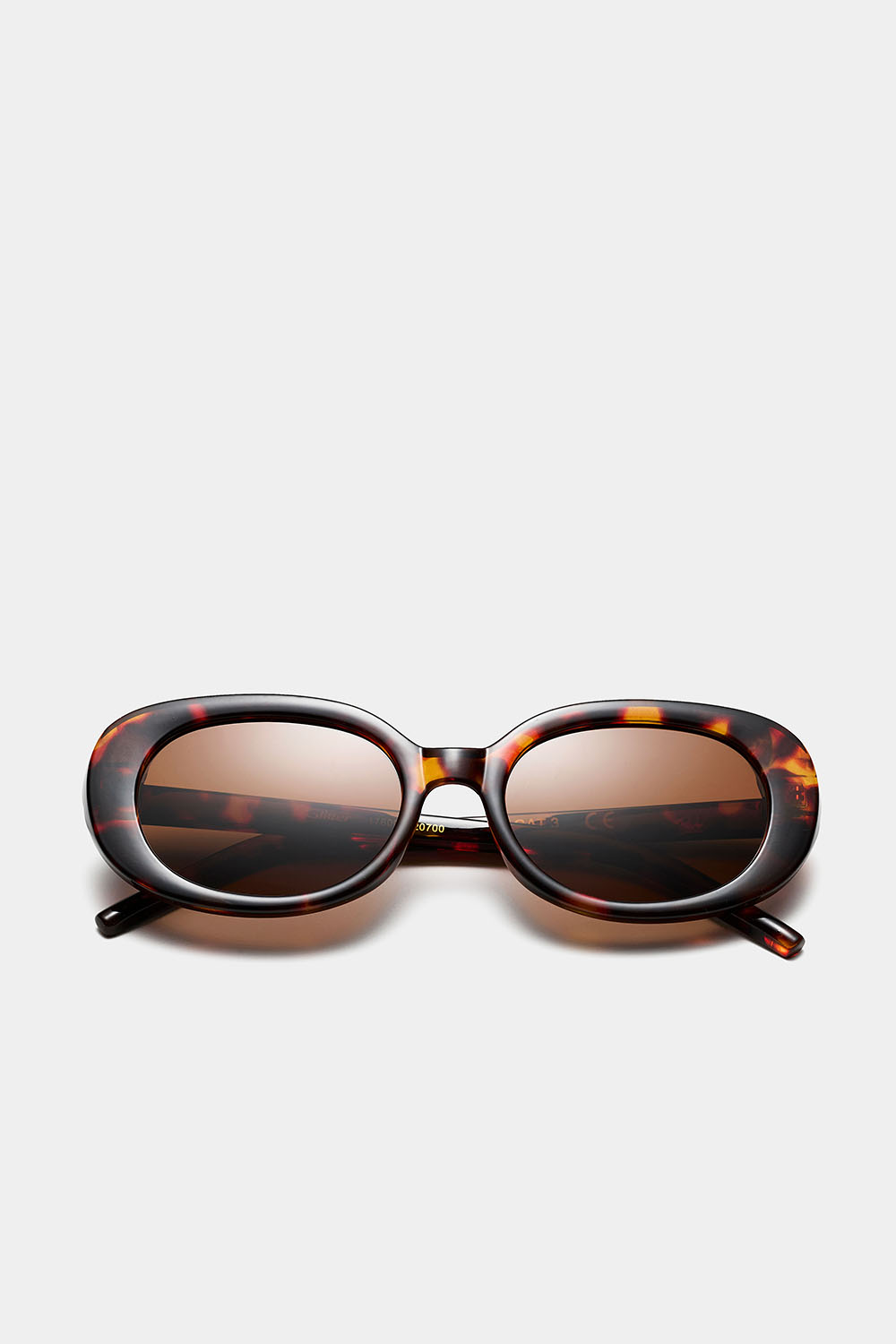 Brune ovale solbriller med bredere stel med skildpaddemønster. Et par stilrene solbriller, som passer til enhver solrig lejlighed.