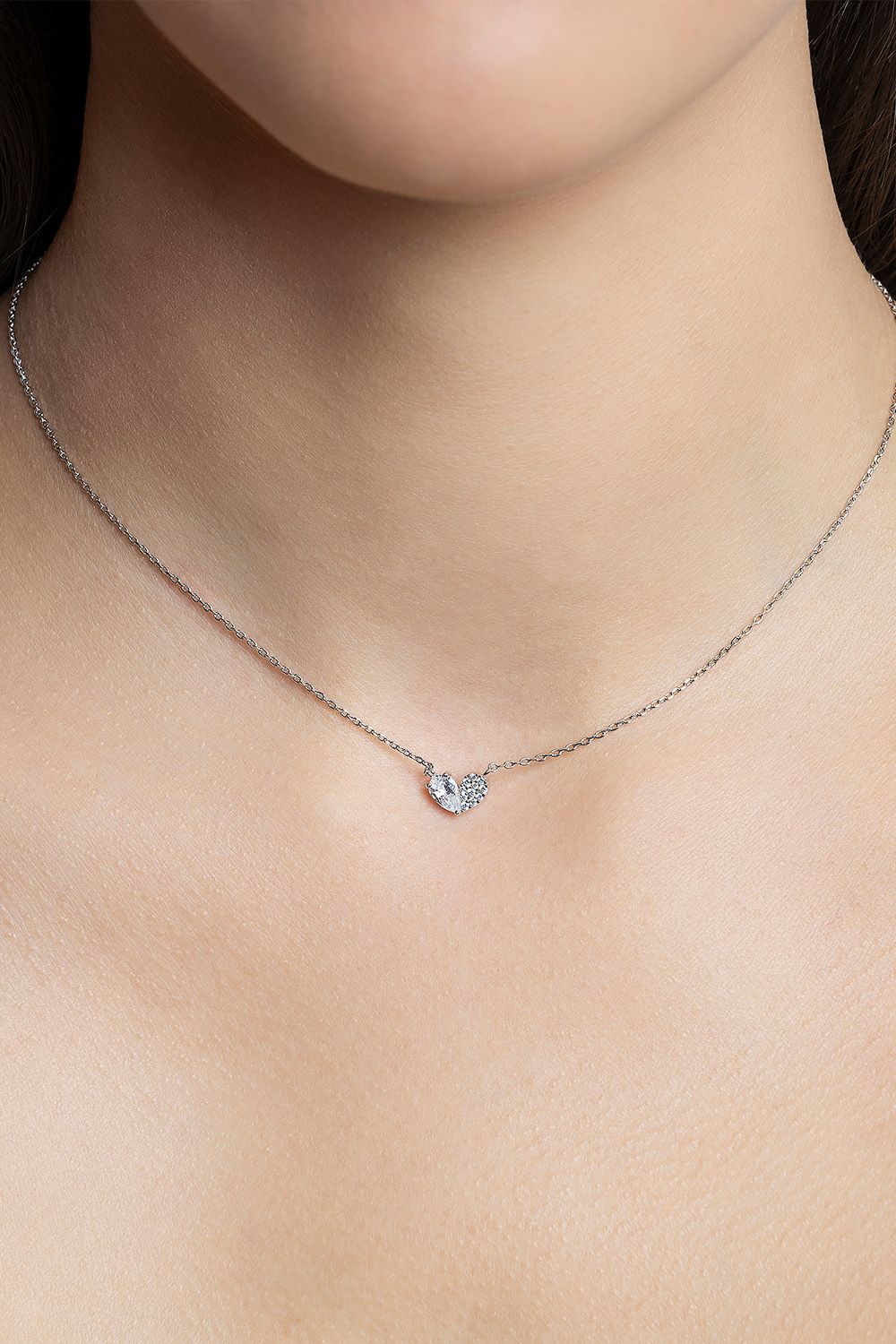 Vores Charlotte-halskæde har en elegant dråbeformet sten sammen med en delikat klynge af glitrende krystaller, omhyggeligt arrangeret i form af et hjerte. Et tidløst smykke skabt for at fejre kærligheden.
