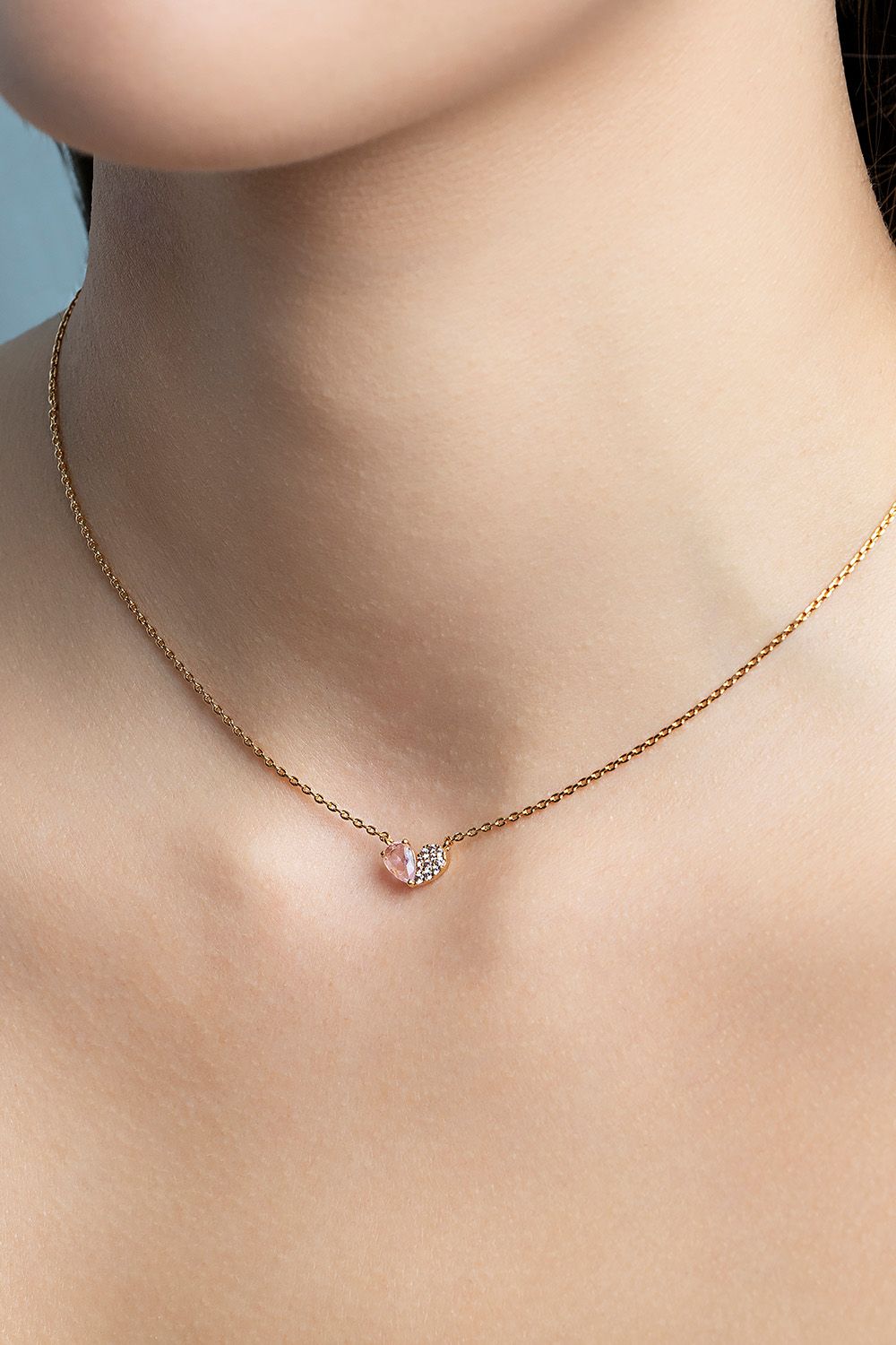 Vores Charlotte-halskæde har en elegant dråbeformet sten sammen med en delikat klynge af glitrende krystaller, omhyggeligt arrangeret i form af et hjerte. Et tidløst smykke skabt for at fejre kærligheden.