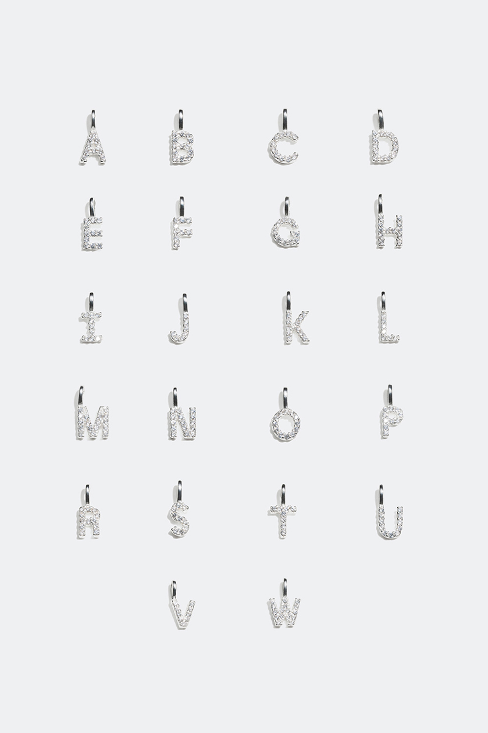 Lille charm med form som et bogstav. Charmen er fremstillet af ægte sølv og dekoreret med små glitrende sten i kubisk zirkonia. Vælg bogstaver i størrelsesmenuen, og sæt dem sammen med en kæde i ægte sølv. Du kan kombinere vores bogstavsmykker og gøre dit smykke mere personligt ved at skabe navne, ord eller initialer.