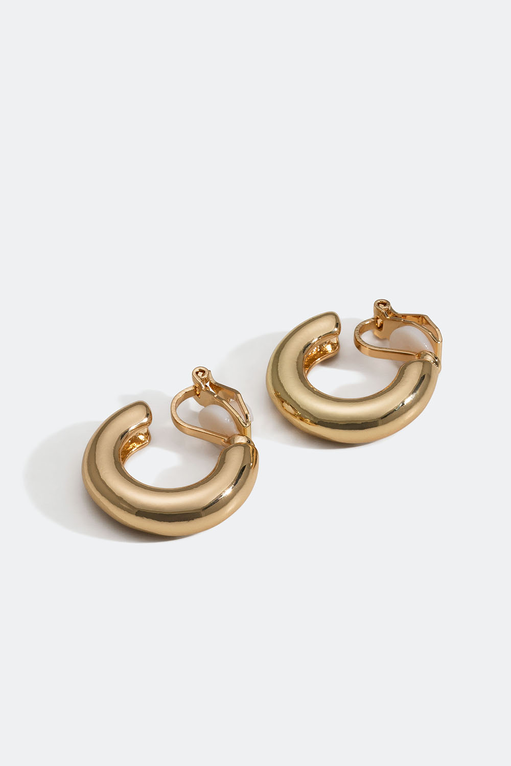 Clipsøreringe med små hoops i guldfarvet metal. Et par klassiske øreringe, som passer perfekt til dig, der ikke har huller i ørerne.