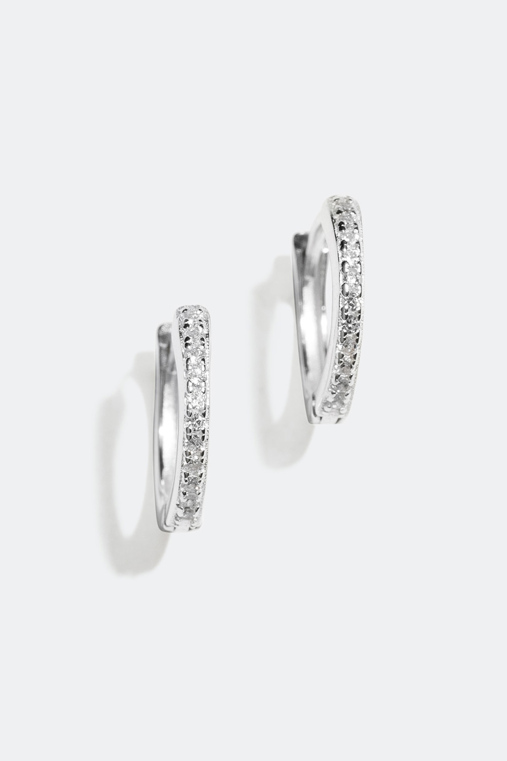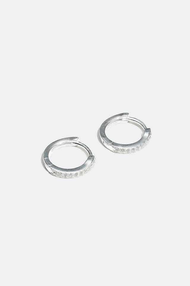 Hoops i ægte sølv med sten i kubisk zirkonia på forsiden.