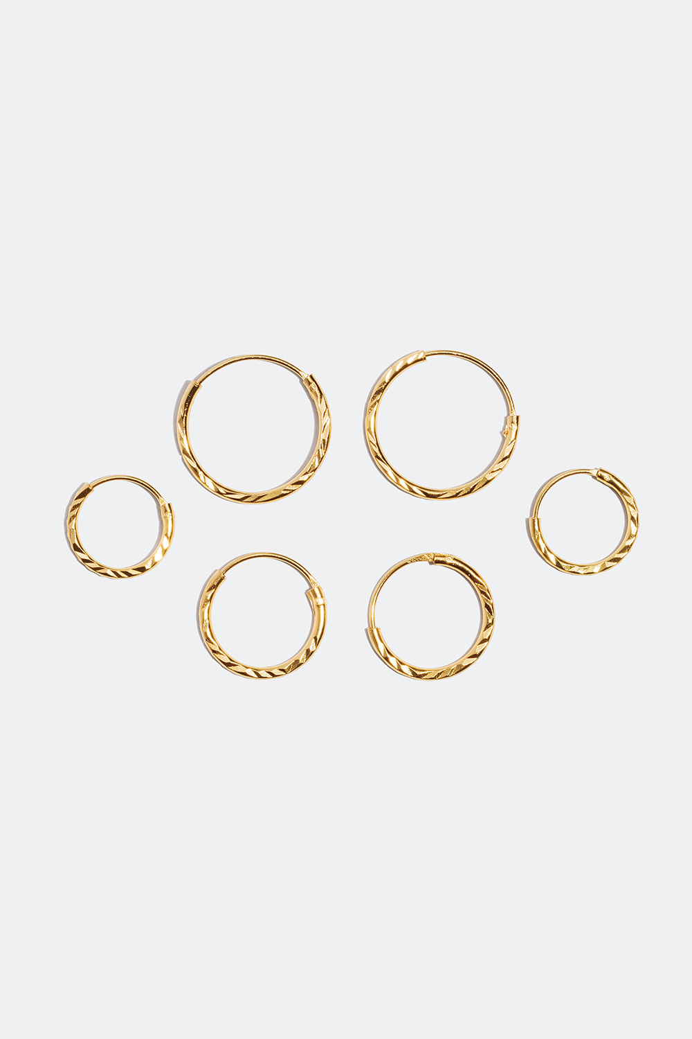 Hoops forgyldt med 18 kt. guld, 3-pak, 1,2 cm