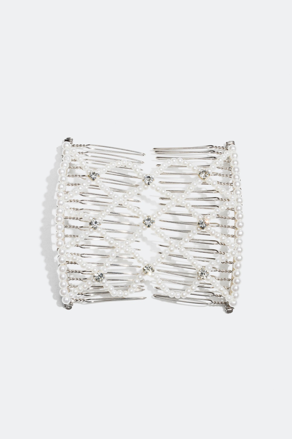 Dekorationskam med perler og glassten - Dobbeltkam med et net med perle og glassten.