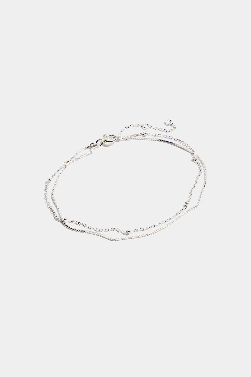Tyndt dobbeltarmbånd i ægte sølv med to kæder. En kompakt, kantet kæde og en med små sølvkugler.