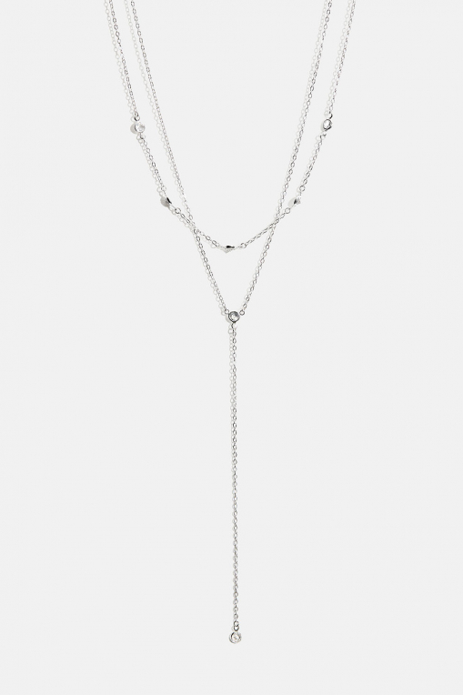 Dobbelt metalhalskæde med smukke kædeled og små dekorative glassten. Kæderne sidder sammen og kan ikke bruges hver for sig.