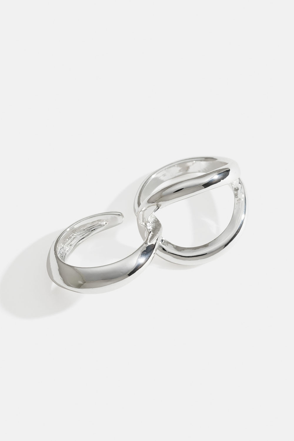 Dobbeltring i sølvfarvet metal med afrundet design.