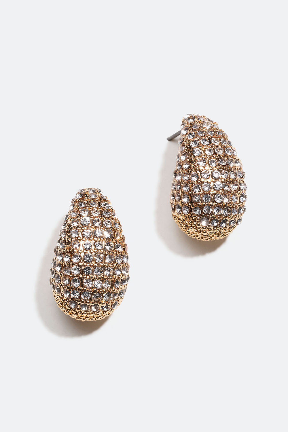 Dråbeformede øreringe i guldfarvet metal pyntet med glassten. Et par glitrende øreringe, der er perfekte til festlige lejligheder.