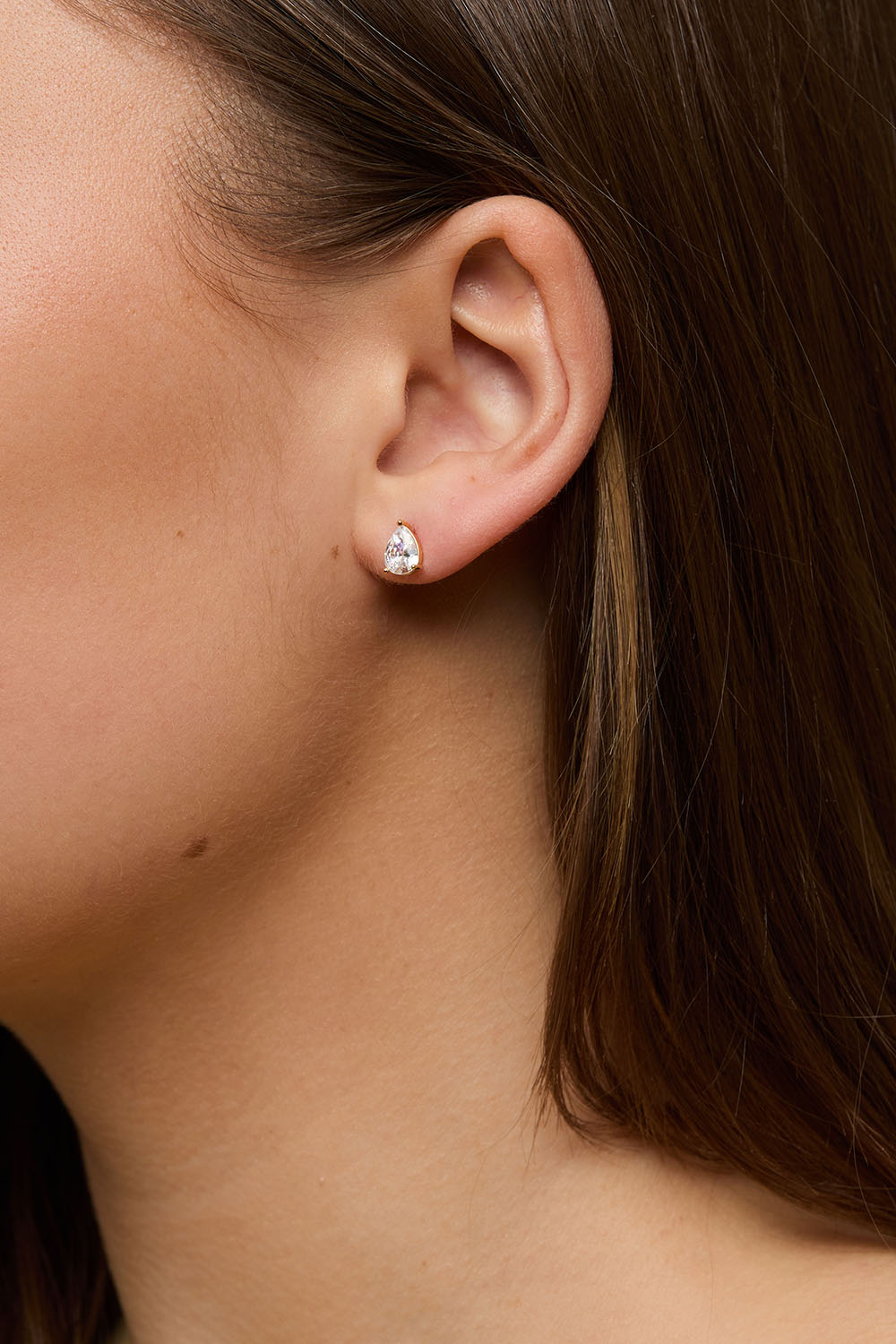 Små dråbeformede ørestikker i 18k forgyldt ægte sølv med små kubisk zirkonia-sten.