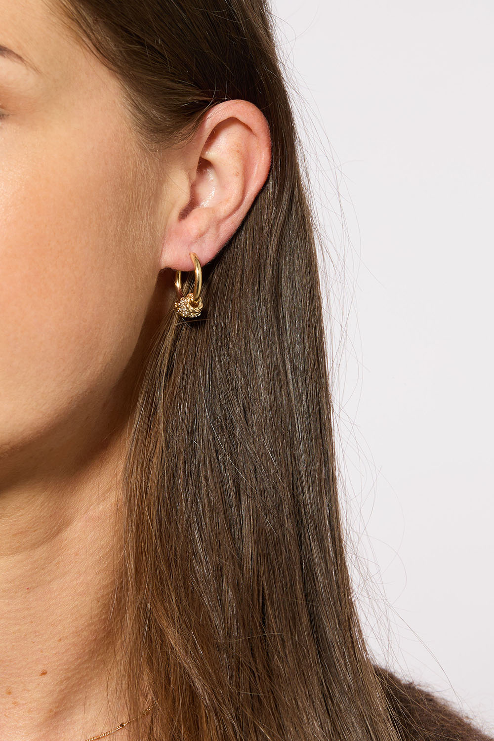 Klassiske hoops i guldfarvet metal med tre runde charms i forskellige design.