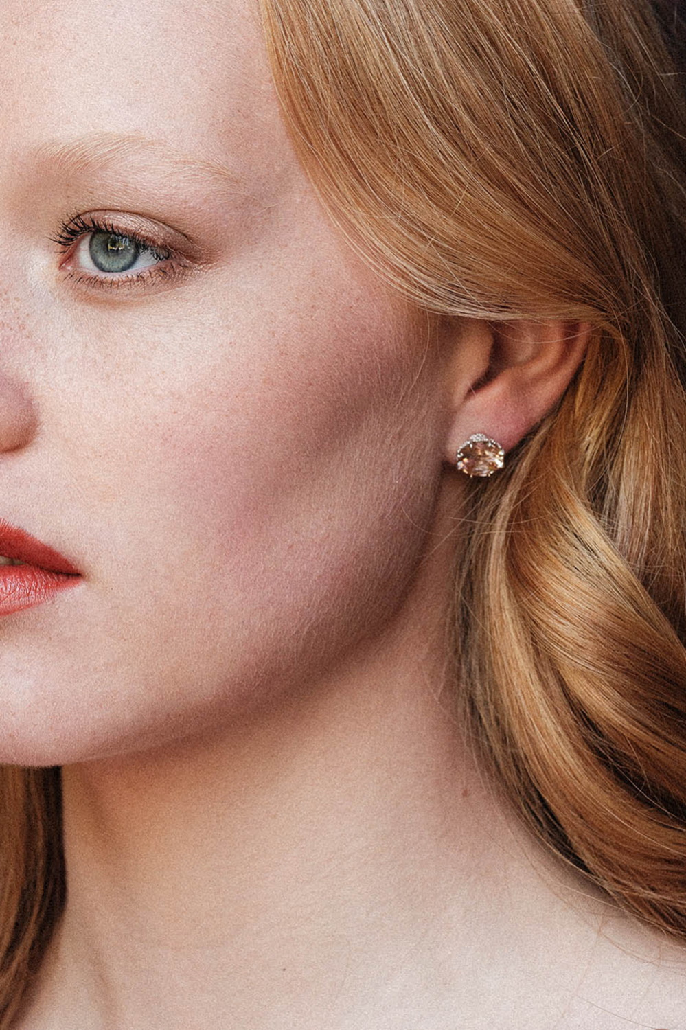 Hver ørering viser en strålende rundskåret sten, sat i en fint detaljeret, poleret fatning, der fanger lyset smukt. Disse subtile, men fængslende ørestikker passer perfekt til Elenora-ringen og løfter ethvert look med raffineret elegance.
