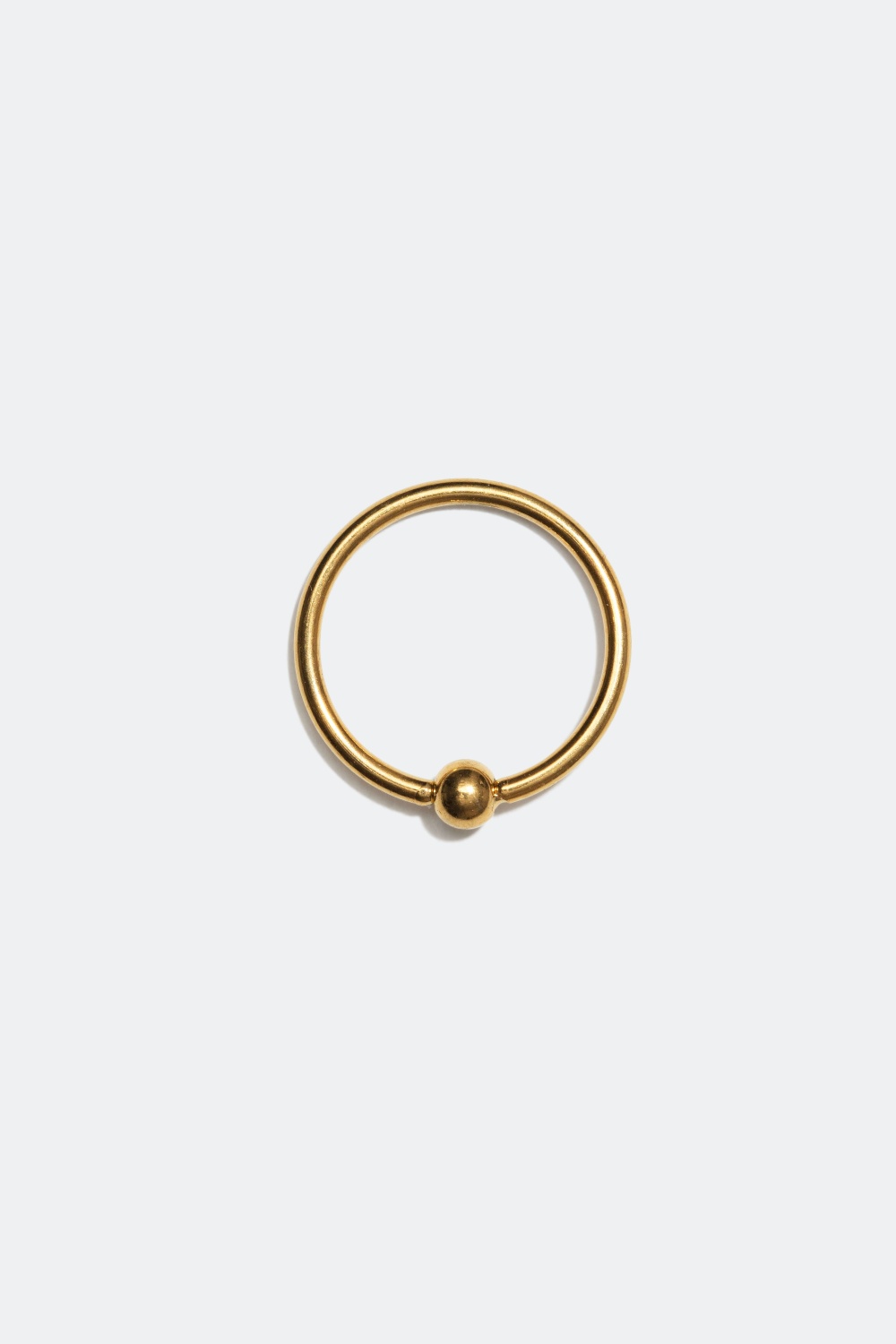 En enkel ring til tragus piercing. Smykket er i kirurgisk stål i enten sølv- eller guldfarvet.