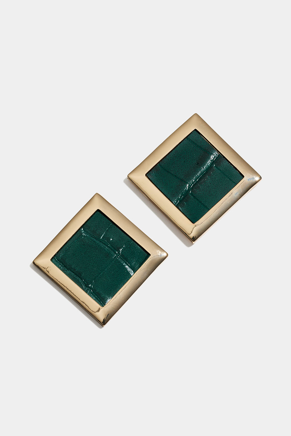 Firkantede øreringe med grønt kunstlæder i gruppen Smykker / Øreringe / Ørestikker hos Glitter (253009897502)