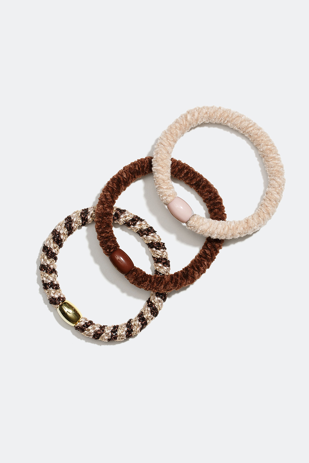 Flettede hårelastikker i blandede brune og beige nuancer, 3-pak i gruppen Håraccessories / Hårelastikker / Flerpak hos Glitter (332000418400)