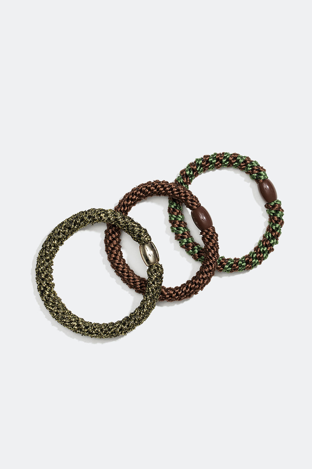 Flettede hårelastikker i et miks af brun og grøn, 3-pak