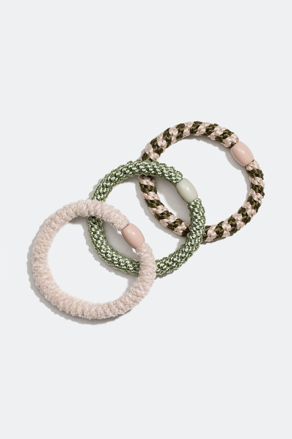 Flettede hårelastikker i et miks af hvid og grøn, 3-pak
