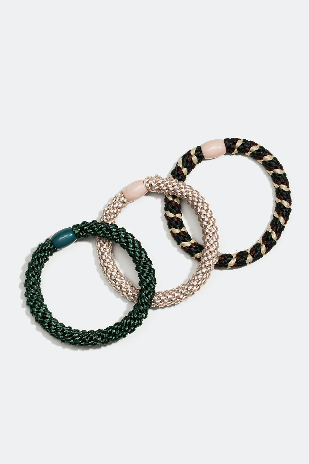 Flettede hårelastikker i mørkegrøn miks, 3-pak i gruppen Håraccessories / Hårelastikker / Flerpak hos Glitter (332000427700)