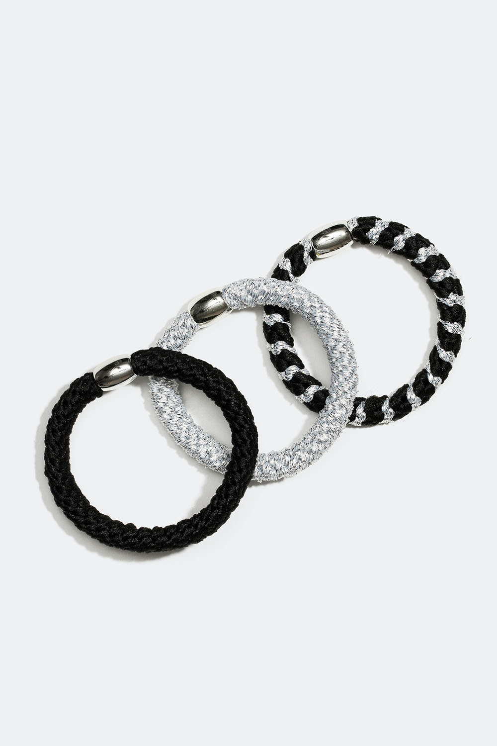 Flettede hårelastikker i sort og sølv mix, 3-pak i gruppen Håraccessories / Hårelastikker / Flerpak hos Glitter (332000429400)
