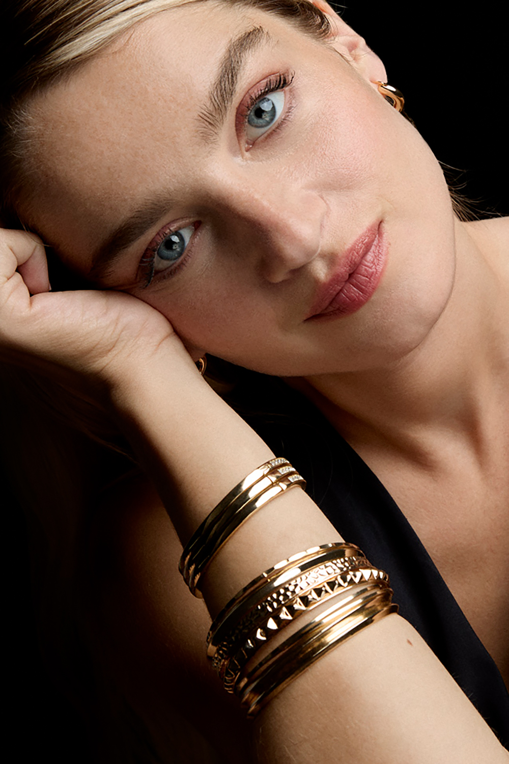 Guldfarvede armringe i forskellige designs, 6-pak