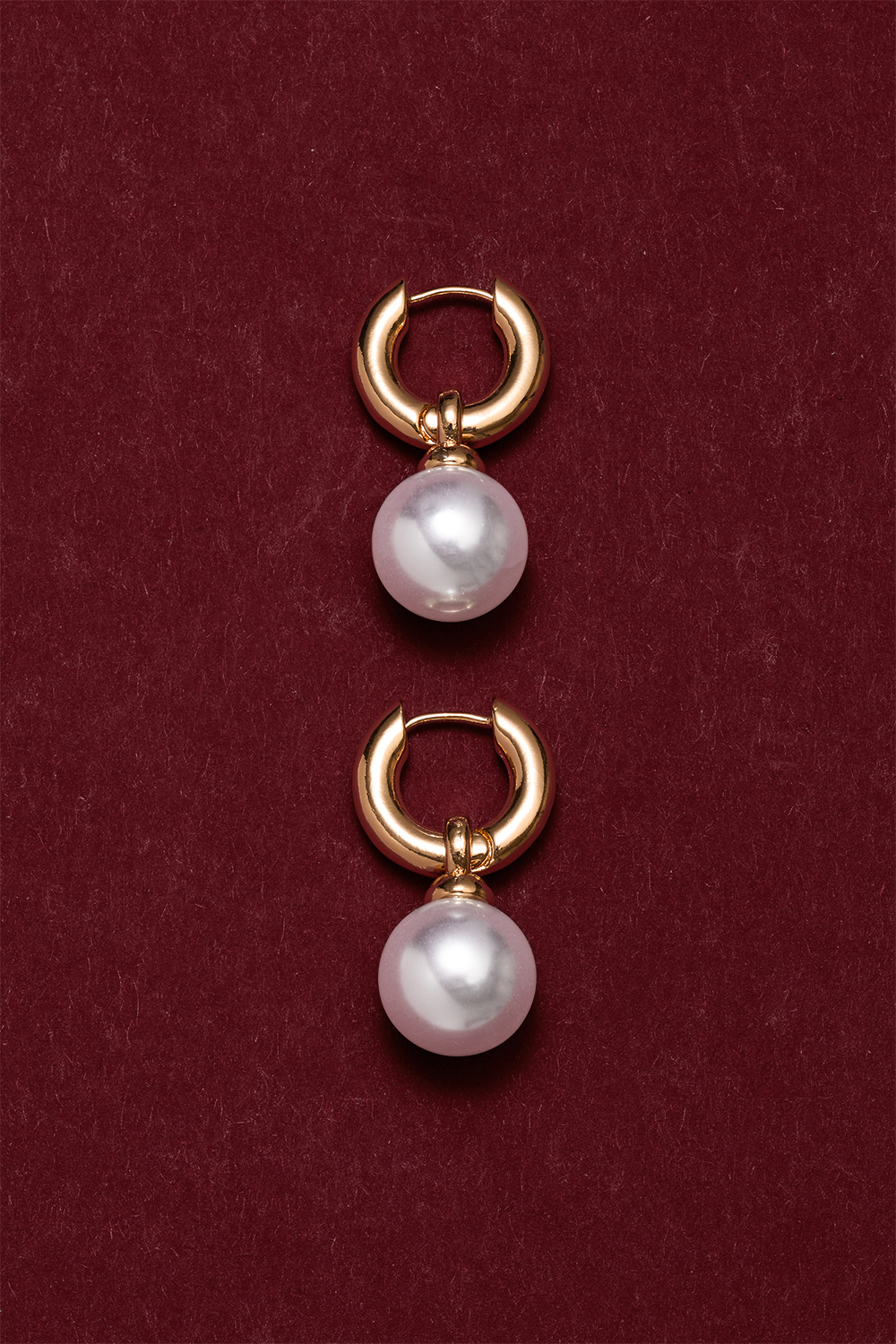 Guldfarvede chunky hoops med stor rund perle i gruppen Smykker / Øreringe / Hoops / Hoops med vedhæng hos Glitter (253010202002)