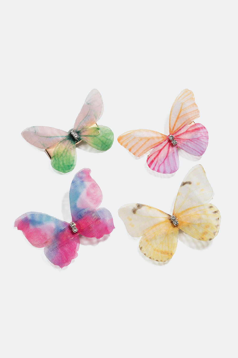 Guldfarvede hårspænder med sommerfugle i forskellige farver, 4-pak