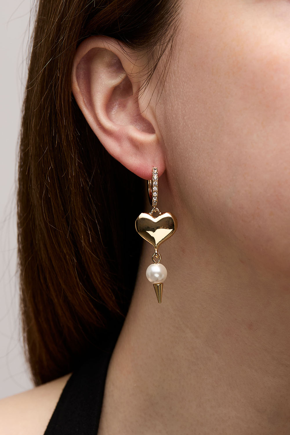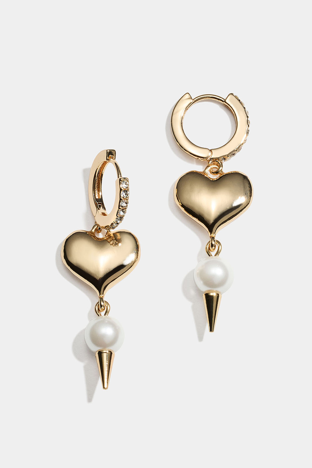 Guldfarvede hoops med hjerte, perle og nitte i gruppen Smykker / Øreringe / Hoops / Hoops med vedhæng hos Glitter (253010032002)
