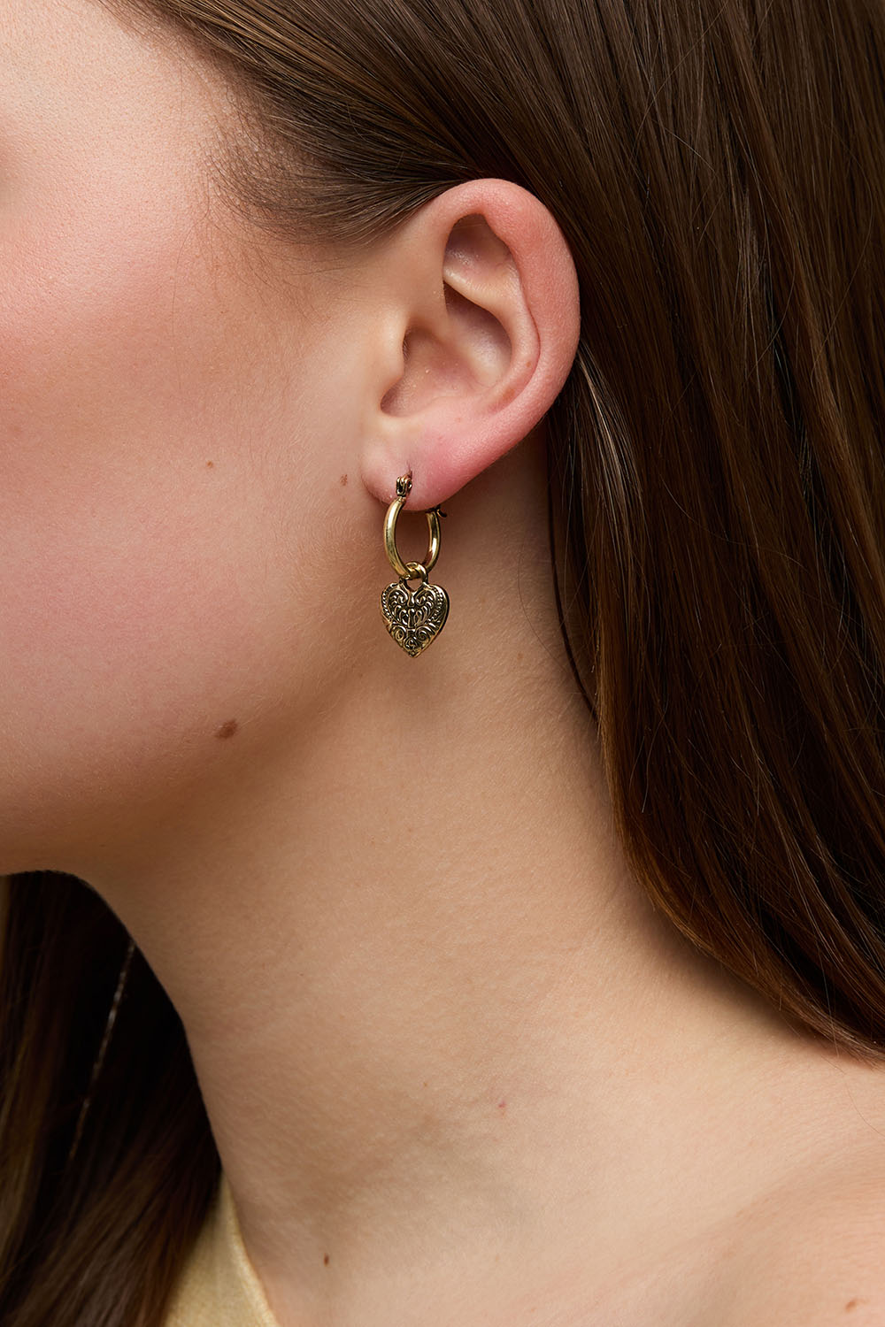 Hoops i metal med mønstrede hjerter i antik stil.