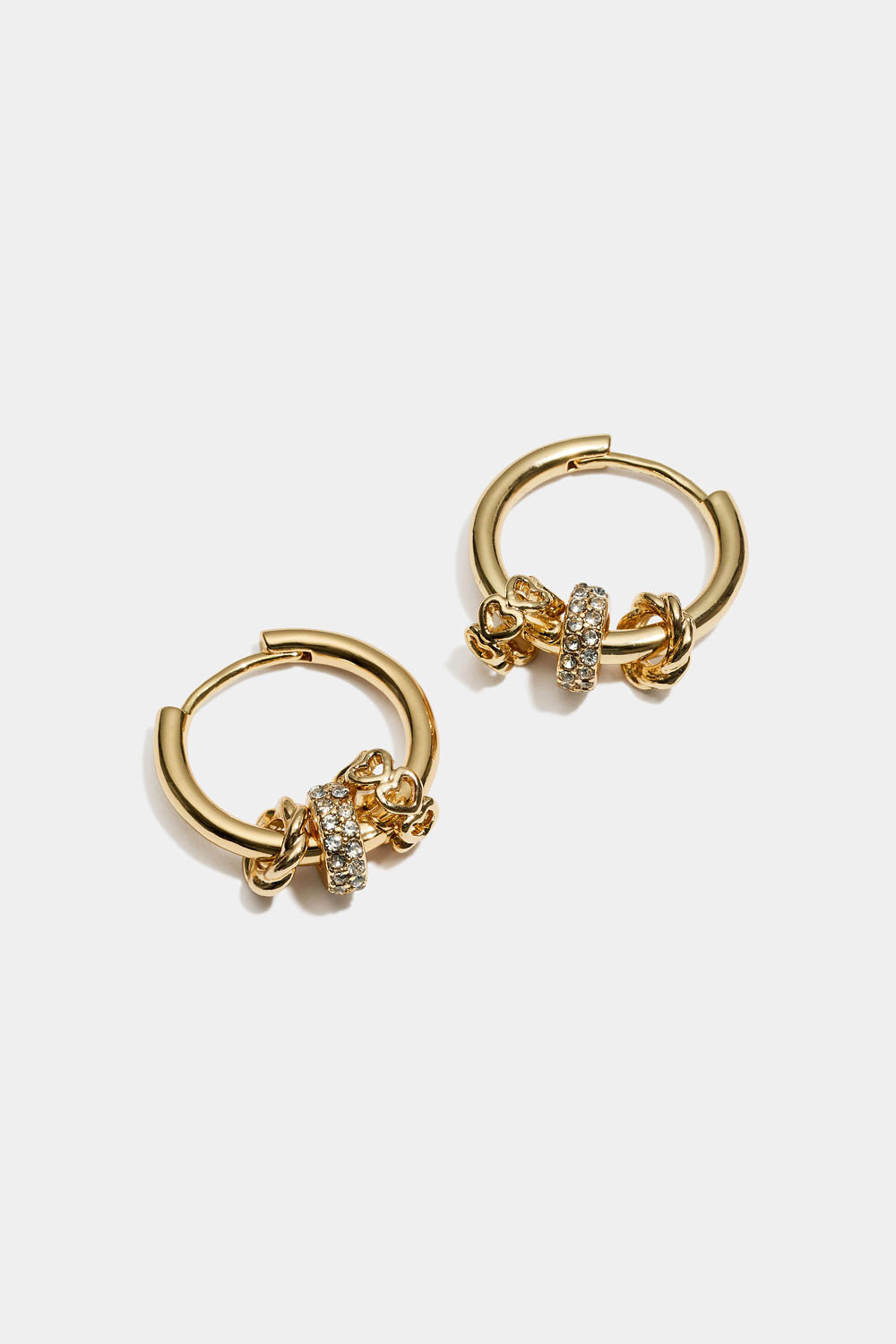 Klassiske hoops i guldfarvet metal med tre runde charms i forskellige design.