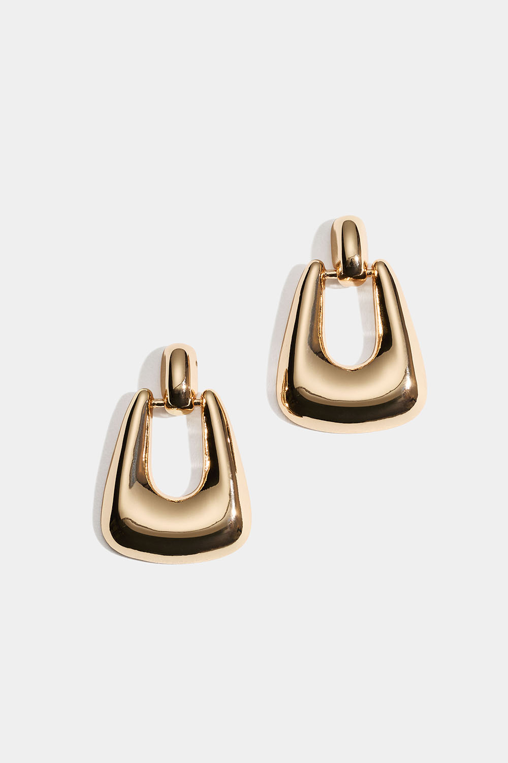 Øreringe med hængende dekoration i blankt guldfarvet metal.