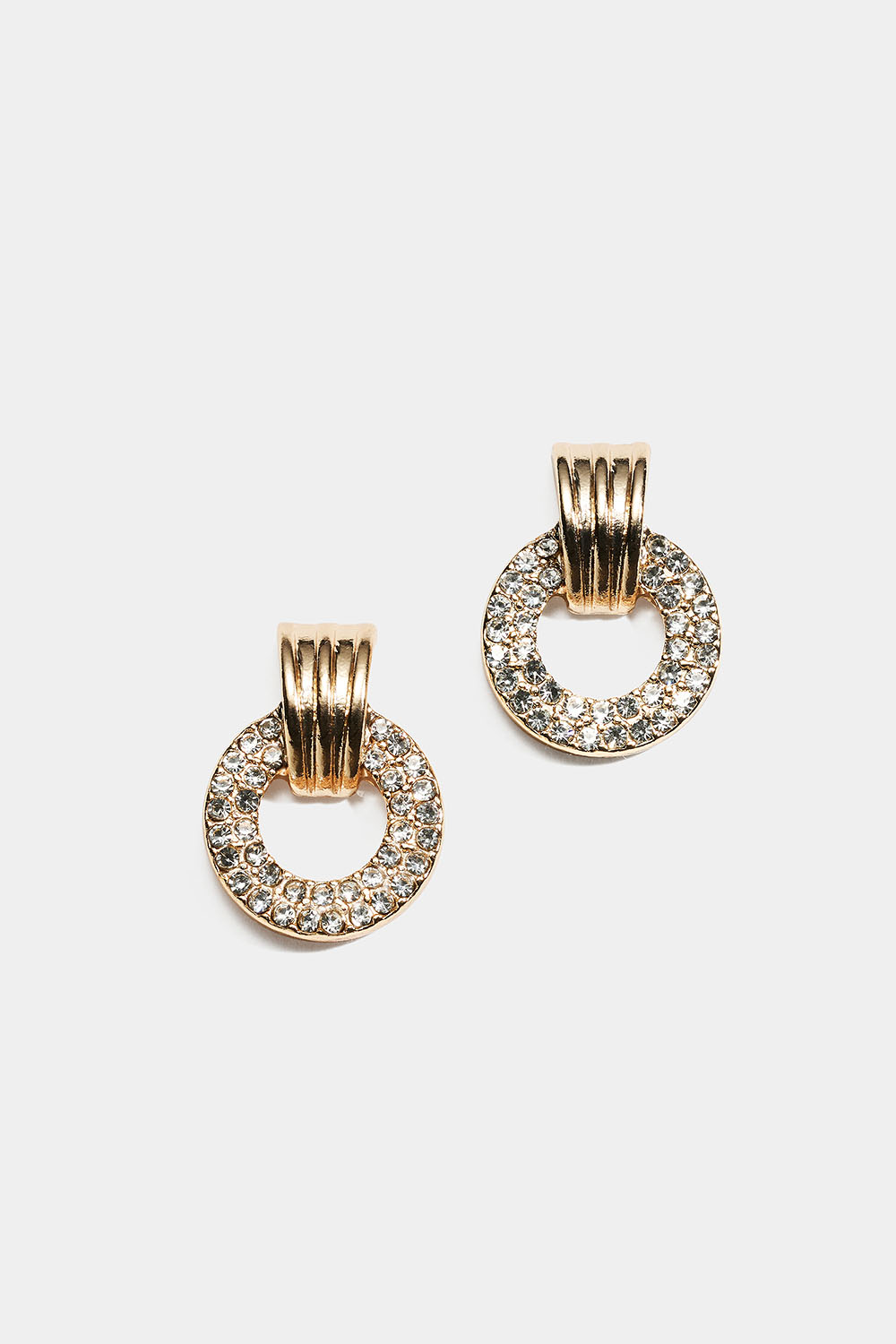 Guldfarvede øreringe med ringe og rhinsten