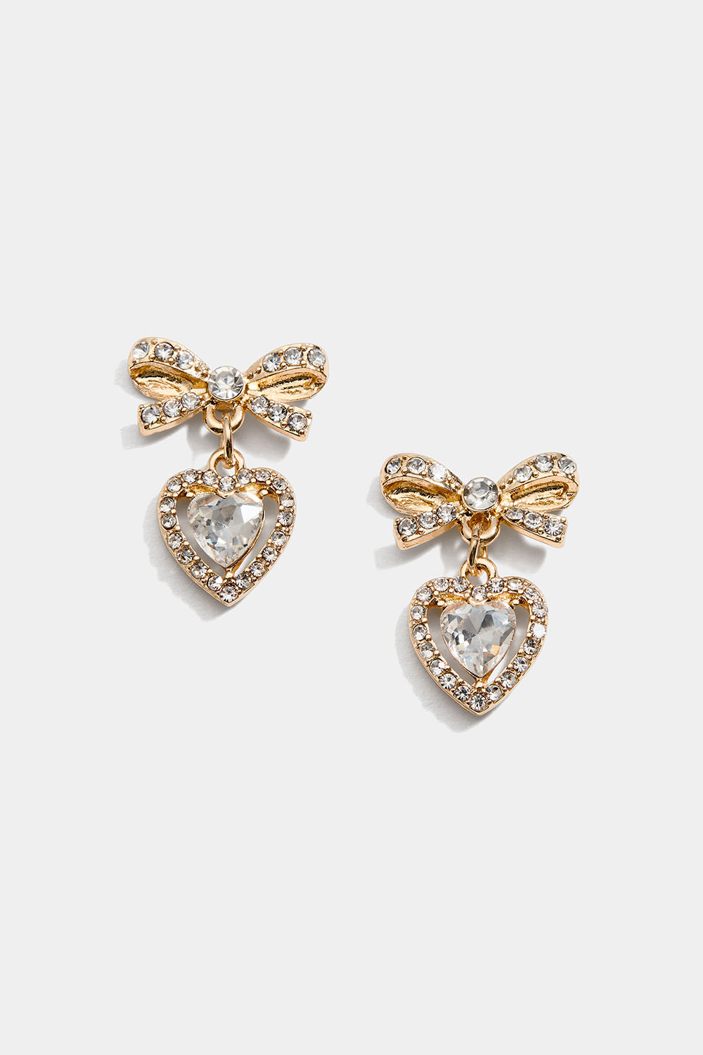 Guldfarvede øreringe med sløjfer og hjerter med rhinsten i gruppen Smykker / Øreringe / Similiøreringe hos Glitter (253008532002)
