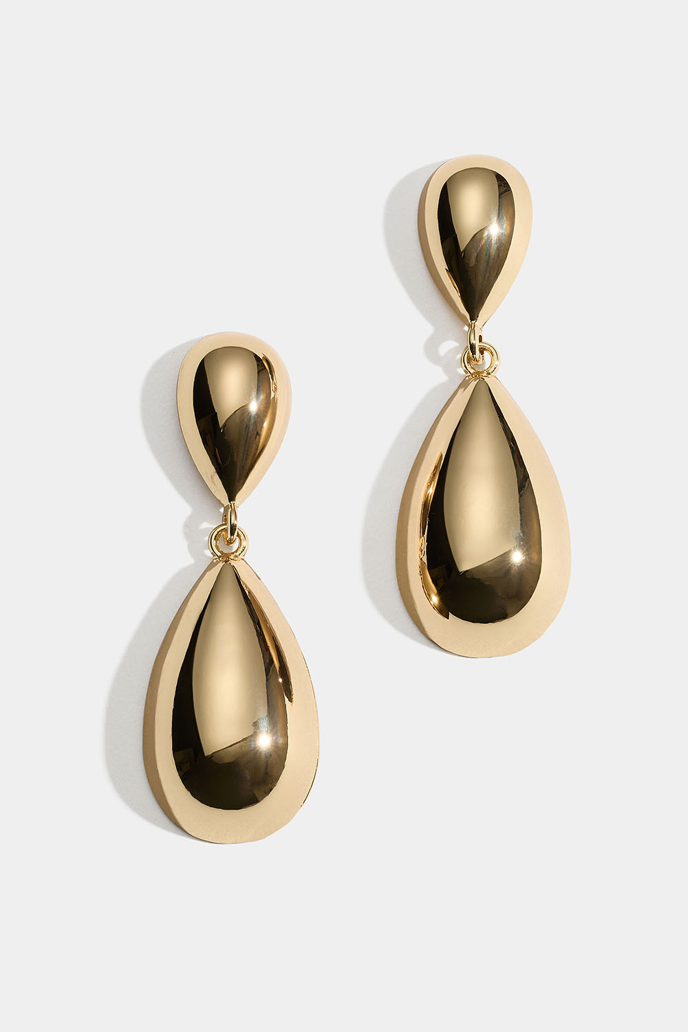 Guldfarvede øreringe med store dråbeformede vedhæng