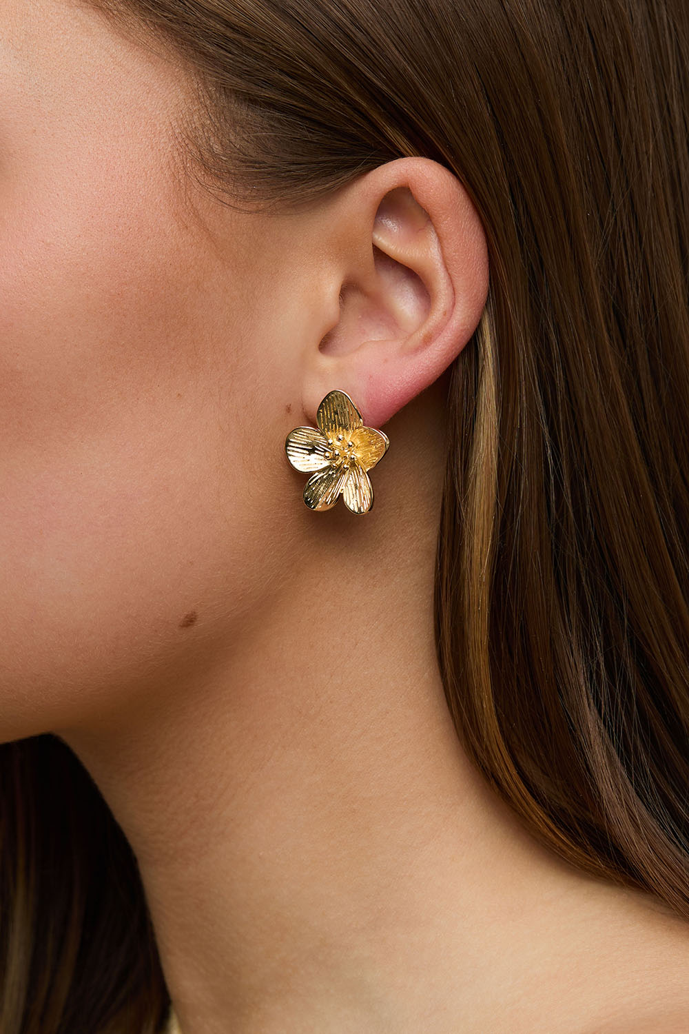 Guldfarvede øreringe med strukturerede blomster