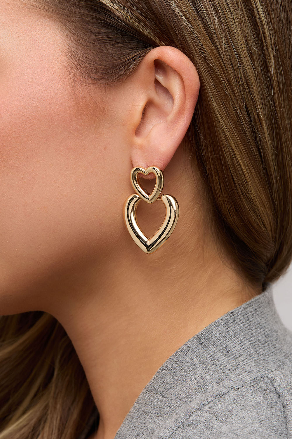 Guldfarvede øreringe med to hjerter i gruppen Smykker / Øreringe hos Glitter (253010532002)