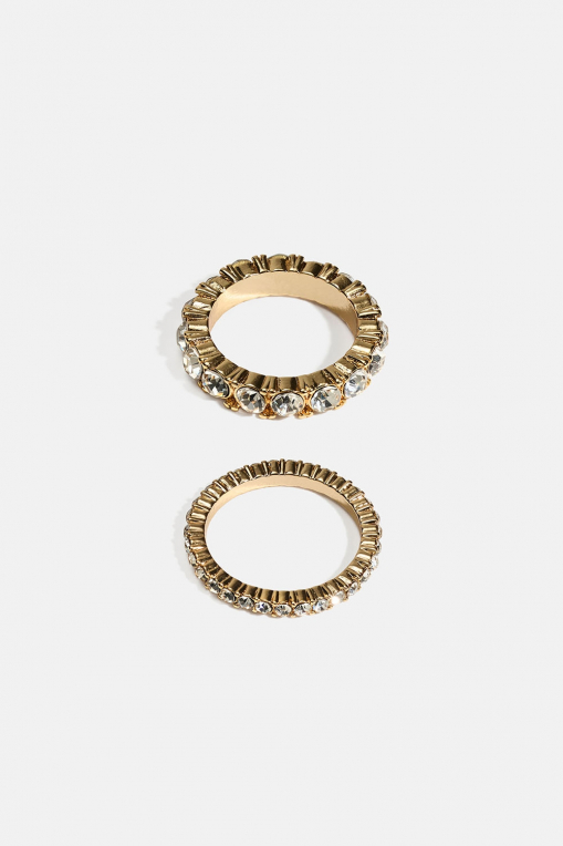 Guldfarvede ringe med rhinsten, 2-pak i gruppen Smykker / Ringe / Flerpak hos Glitter (2560016520)