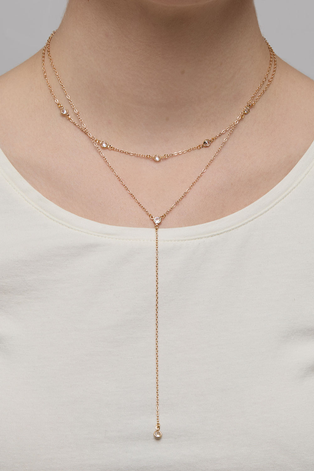 Guldfarvet dobbelt halskæde med små runde glassten i gruppen Smykker / Halskæder / Halskæder med vedhæng hos Glitter (254002682002)